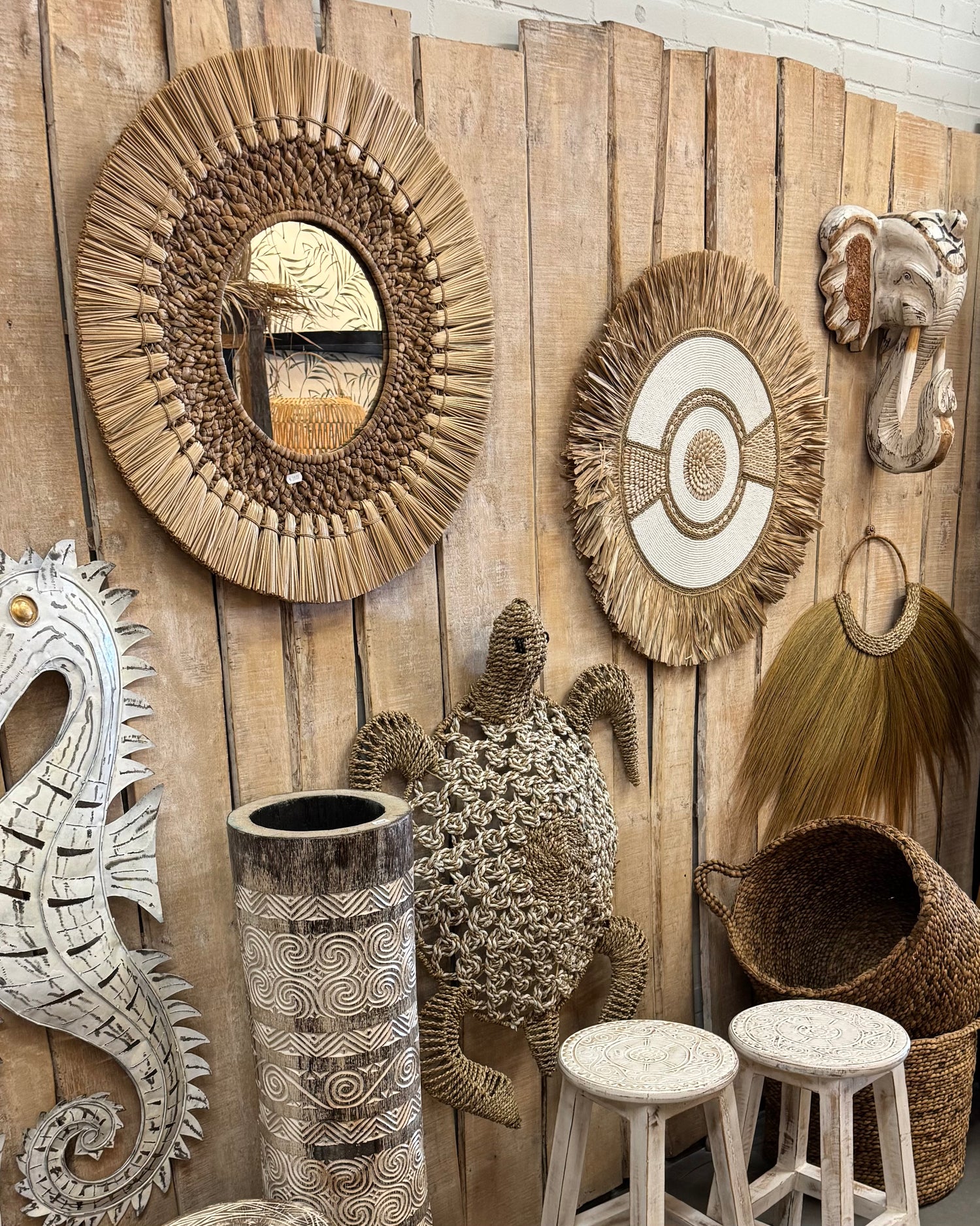 Tover je muur of schutting in een handomdraai om naar die heerlijk ibiza vibe, beach decor of bali boho sfeer. Bijvoorbeeld met spiegels, wandborden, houten ornamenten, beach items, wandmanden of natuurlijke wanddecoratie.