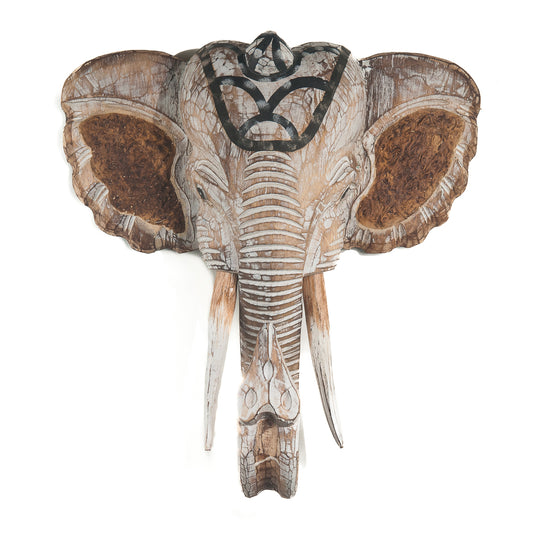 Houten handgesneden olifantenkop bruin naturel / whitewash Large