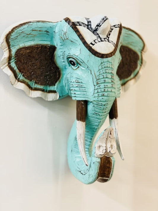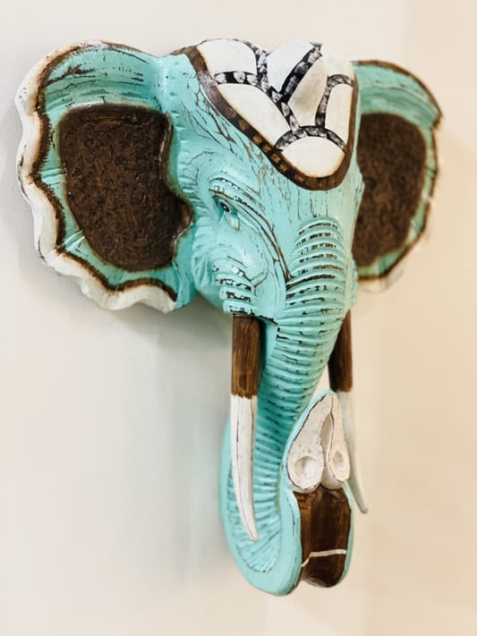 Houten handgesneden olifantenkop celeste medium