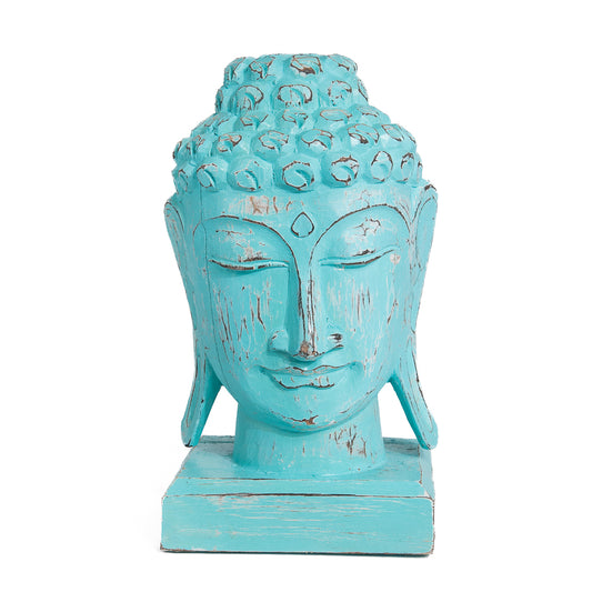 Houten handgesneden buddha hoofd in div. kleuren