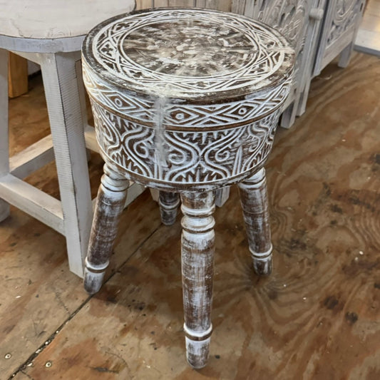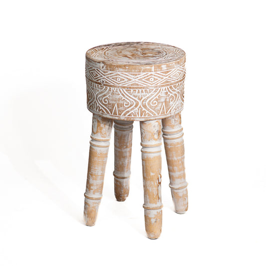 Houten krukje Borneo naturel whitewash