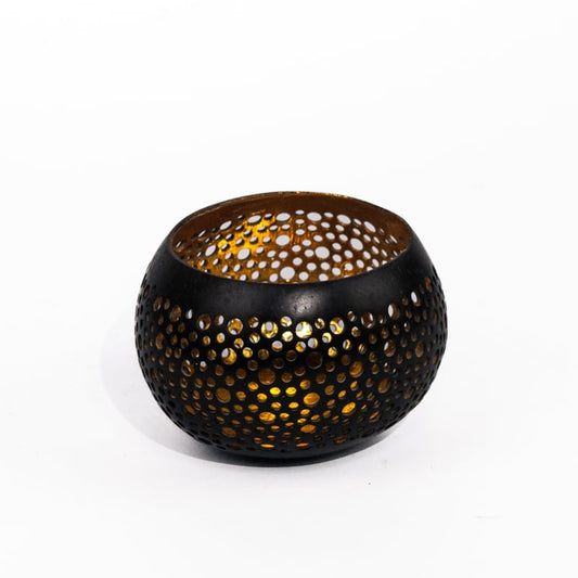 Kokosnussschale Teelichthalter schwarz/gold