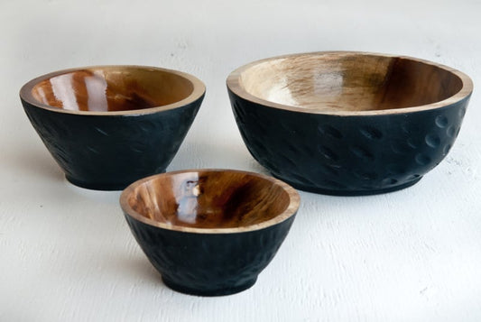 Schwarze Holzschalen mit natürlichem Interieur