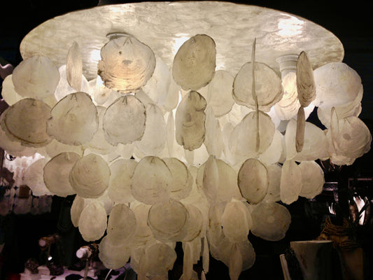 Capiz-Muschel-Hängeleuchte XL 80x60cm weiß natur GROSS