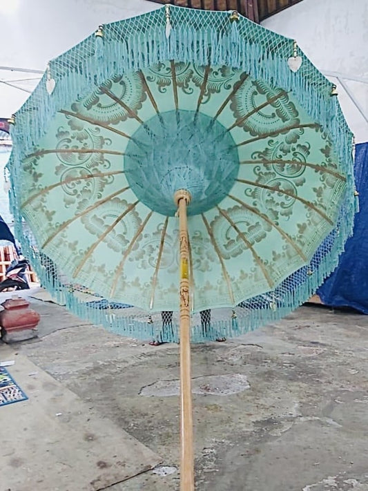 Ibiza Sonnenschirm 2 Meter türkis/gold Boho (Stiel zweiteilig)