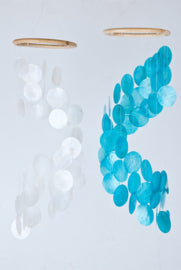 Windspiel aus Capiz-Muscheln, groß, türkis/blau/grün