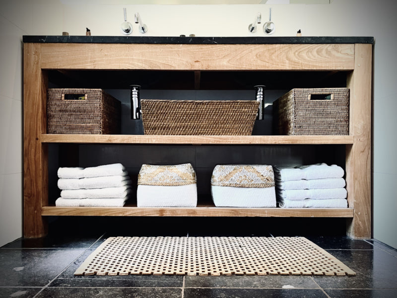 Bamboe offermanden zijn super geschikt voor het opbergen van bijvoorbeeld een föhn. Nooit meer los liggende items maar een zee van rust. In meerdere maten en designs verkrijgbaar.