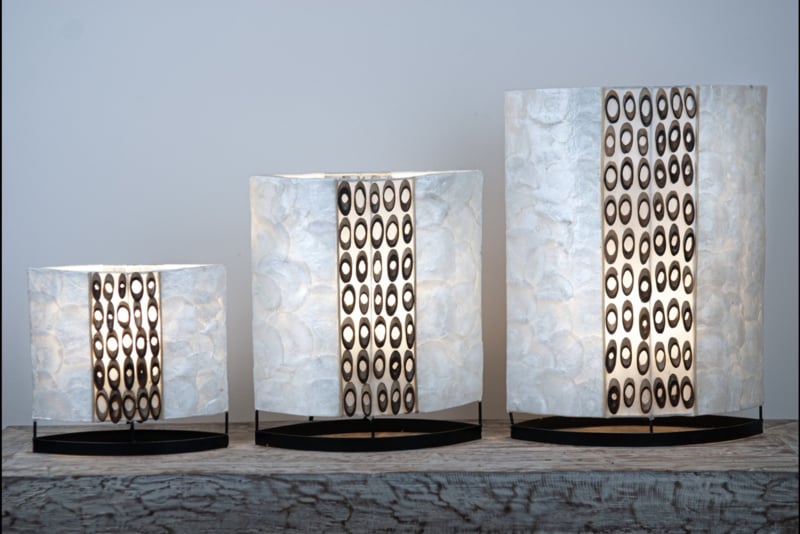 Capiz schelpen tafellamp bamboe strook