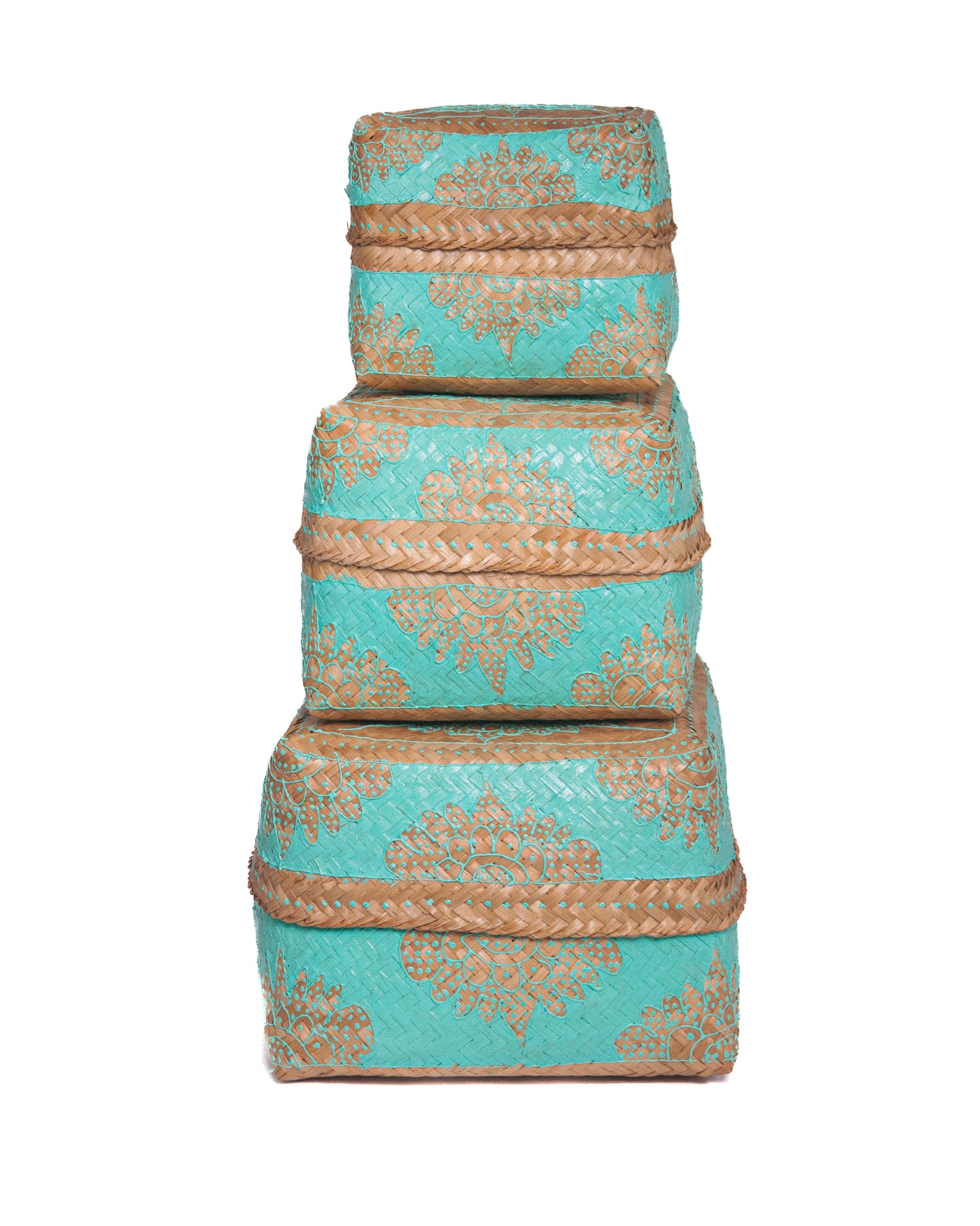 Prachtige bamboe offerdoos in het natural, handbeschilderd met celeste. Een prachtige typische Balinese sfeermaker en ook heel functioneel!