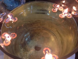 Doe een laag water in een vaas, schaal of jampotje en ca. 1 cm olie erbij en branden maar. Als het laagje olie te klein wordt gewoon weer wat bijschenken, olie is lichter dan water en komt altijd naar boven drijven.